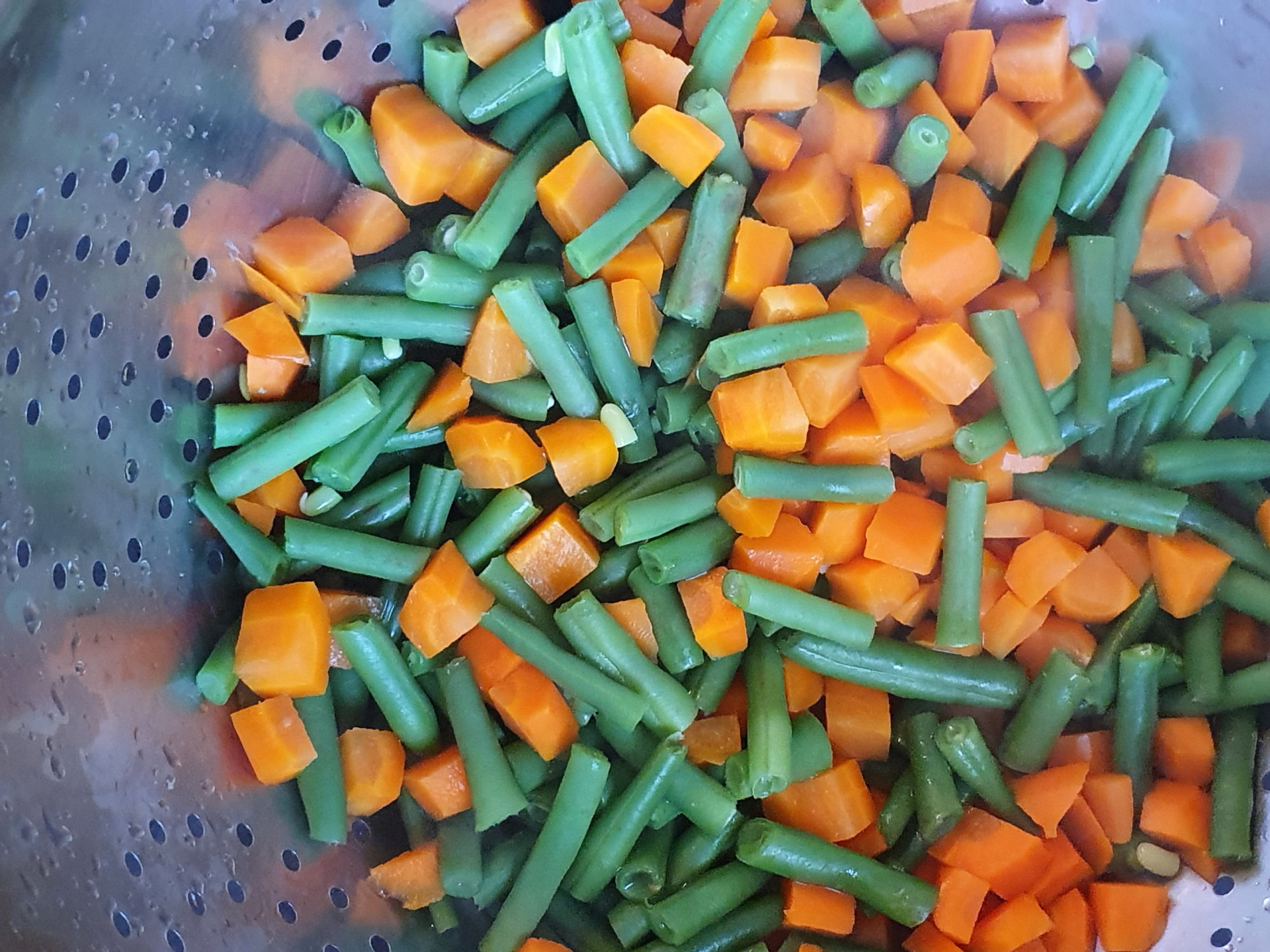 - Bohnen, Karotten Paprika dazu und weitere 5 Minuten garen.