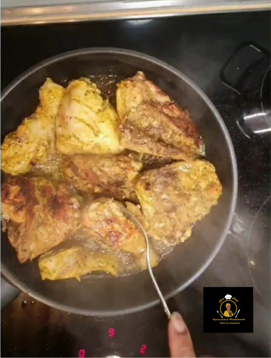 - Anschließend die Frittierte Hähnchenteile hinzu gut rühren und zugedeckt weitere 5 Minuten köcheln lassen, abschmecken und fertig!