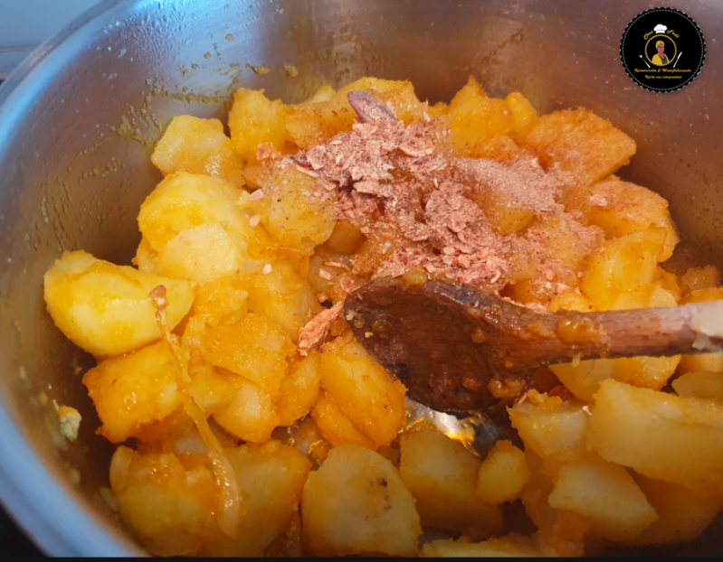 - Die gekochten Kartoffeln hinzufügen und gut vermischen