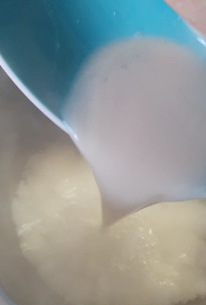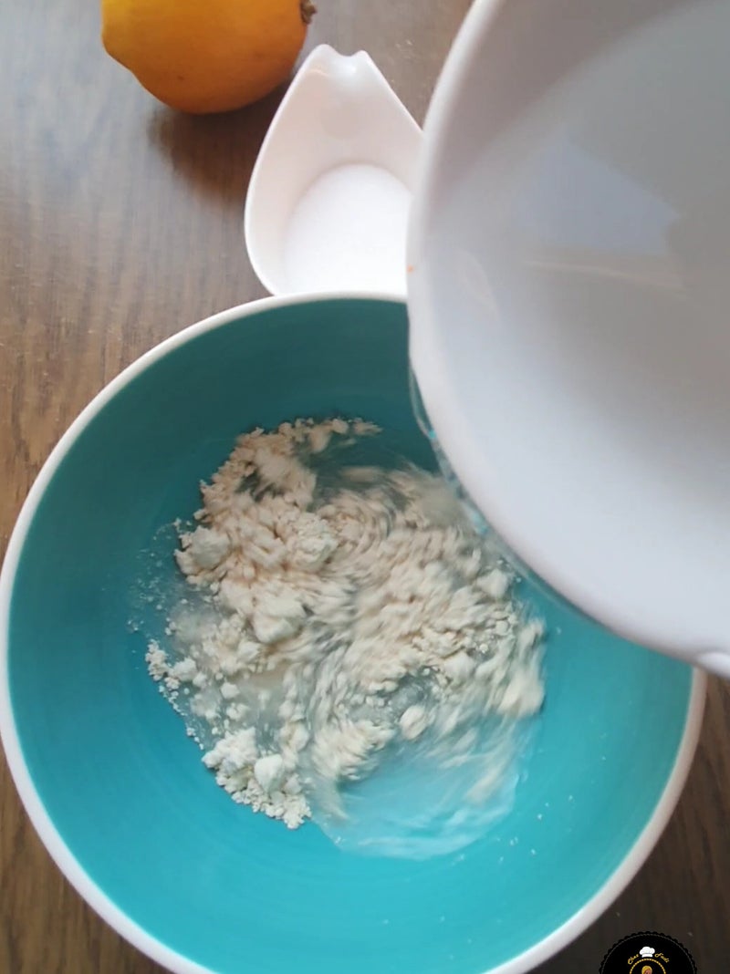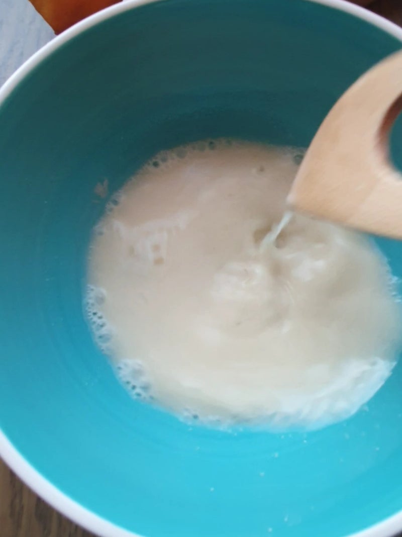 Maismehl mit etwa 100 ml Wasser zu einer milchigen Konsistenz verrühren