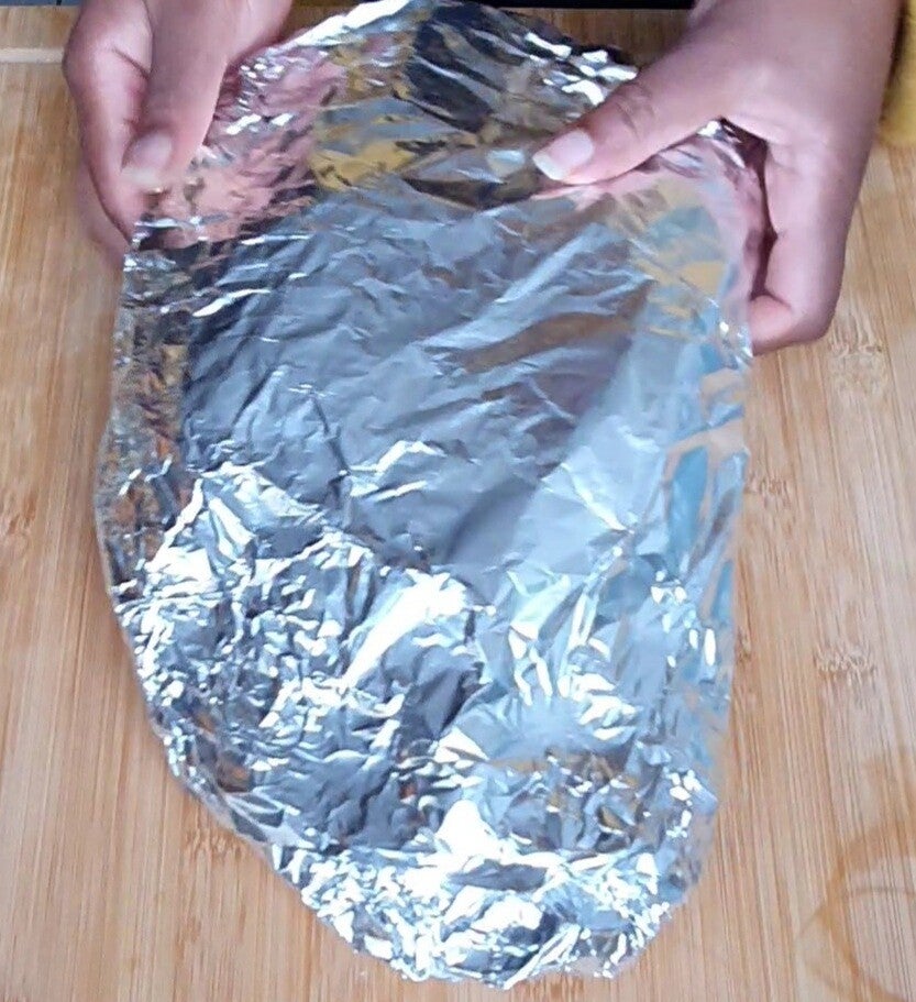 - Aus dem Backofen heraus nehmen und die Folien vorsichtig entfernen