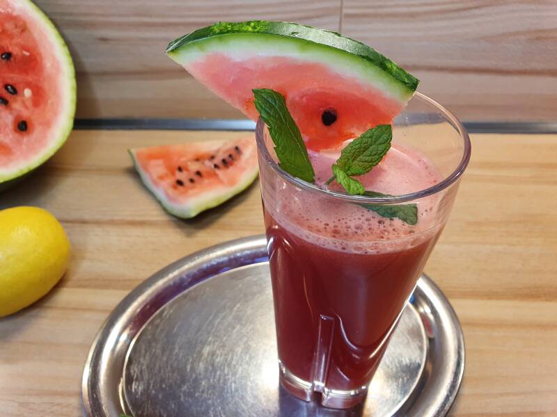 - Wassermelone waschen, schälen und in Stücke schneiden