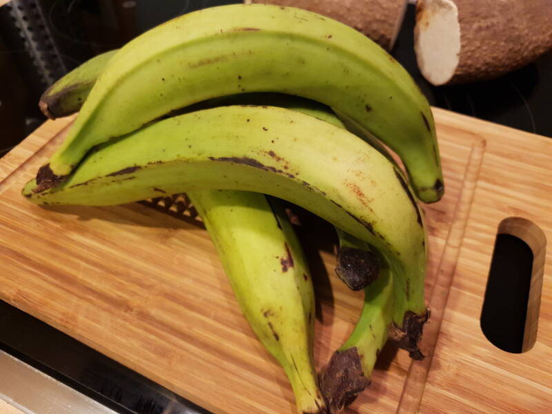 - 4 große, grüne Kochbananen (unreif)