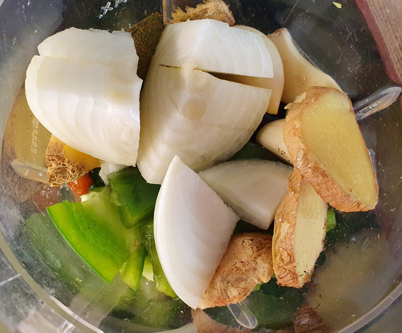 Alle Zutaten in einem Mixer geben und das Ganze zu einer glatten Paste mixen.